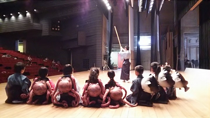 会場設営も完了し、子どもたちがリハーサルの前に能舞台の
