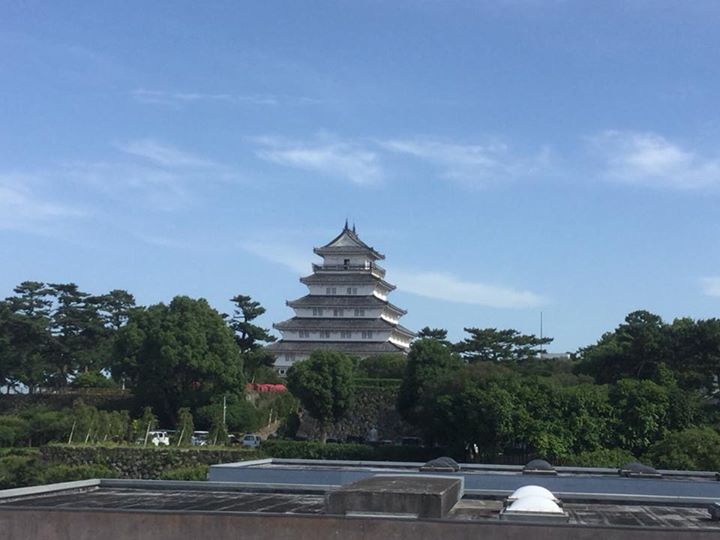 見事な青空のしたの島原城天守閣を窓の外に眺めながら・