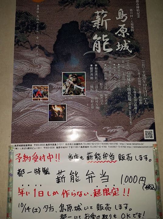 今年も「島原城薪能弁当」の予約受付中!です。 みなさんぜひお早めにご予約をどうぞ! Facebook...