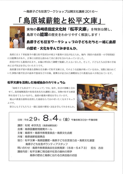 今年も貴重な島原ならではの「特別公開文化講座!」 無料です。どなたでも参加できます。 「なぜ島原で島原城薪能が長年伝統として継承されてきた...