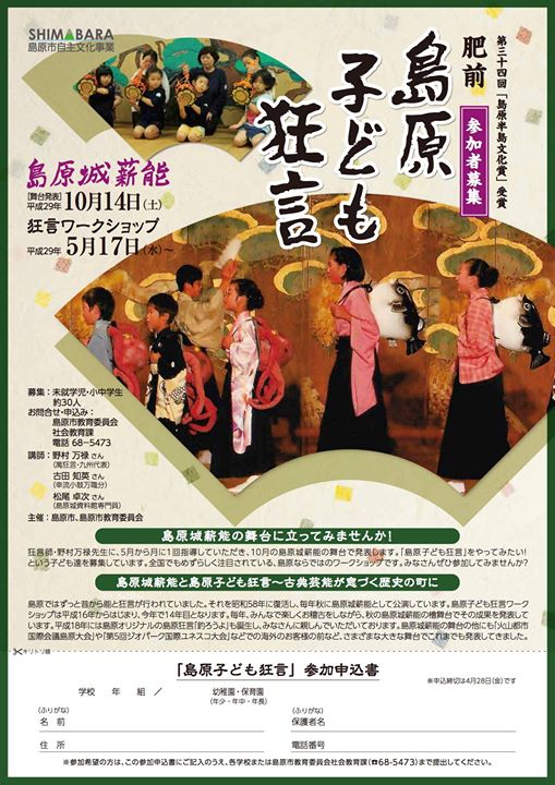 さあ!島原城薪能の舞台にたってみませんか? 今年度も島原子ども狂言の参加者募集が今日からはじまりました♪ ぜひ参加してみませんか? 講師は...