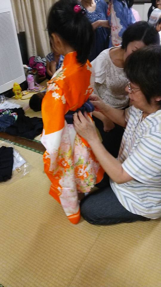 今日の「肥前島原子ども狂言」は毎年恒例の親子着付け教室。