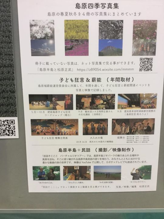 本日まで開催中の「島原ふるさと産業まつり」の島原地域おこし協力隊の活動報告のコーナーにて、今年度の島原城薪能や島原子ども狂言を、島原城薪能振興会の運営委員として撮影担当された松原正武さんが報告されています。ありがとうございました!😀