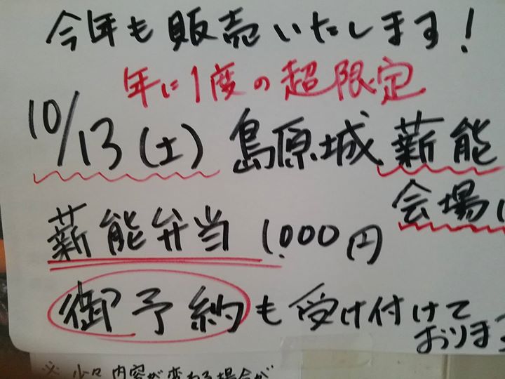 Oct 2, 2018 島原城薪能会場でのお食事に! 島原城薪能会場でのお食事に! 事前予約受付中です。 Facebook Tweet Posted in お知らせ | No Comments » 関連記事 【参加者募集!】令和8年島原市自主文化事業「肥前島原子ども狂言ワークショップ」 肥前島原子ども狂言 春の狂言会2026 第43回島原城薪能(会場変更) 九州子ども狂言交流舞台in島原(会場変更) 島原城薪能を味わう 四明荘特別公開講座 < いよいよ本番もどんどん近づいてきています! 島原市地域おこし協力隊のFBページでご紹介いただきました。 >
