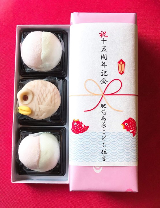 第36回島原城薪能の会場ではそのお祝いとして、島原狂言「釣ろうよ」のめでたい‘鯛’をモチーフに特別に製作いただいた、記念のオリジナル和菓子を限定数で販売いたします。
