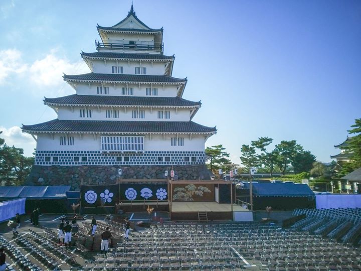 いよいよ島原城薪能当日となりました。会場の島原城では地元の高校生ボランティアのみなさんにも手伝っていただいて、急ピッチで設営が進んでいます。