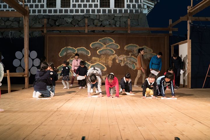 前日の子ども狂言の子どもたちの恒例のお稽古前の雑巾掛けの様子です。😊一年に一度だけ組まれる能舞台をまずはみんなできれいに拭きあげます。