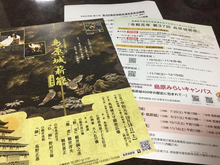 Jul 4, 2019 今夜は、令和元年の島原城薪能の開催に向けて、だいよんかいめの運営会議! 今夜は、令和元年の島原城薪能の開催に向けて、だいよんかいめの運営会議! いよいよポスターとチラシが完成! みなさんぜひお楽しみに! Facebook Tweet Posted in お知らせ | No Comments » 関連記事 【参加者募集!】令和8年島原市自主文化事業「肥前島原子ども狂言ワークショップ」 肥前島原子ども狂言 春の狂言会2026 第43回島原城薪能(会場変更) 九州子ども狂言交流舞台in島原(会場変更) 島原城薪能を味わう 四明荘特別公開講座 < 「長崎新聞」(令和元年5月17日付)に今年の「肥前島原子ども狂言」の開講式と公開講座のことをご紹介くださいました! 島原城薪能の公式Twitterアカウントを開設しました。 >