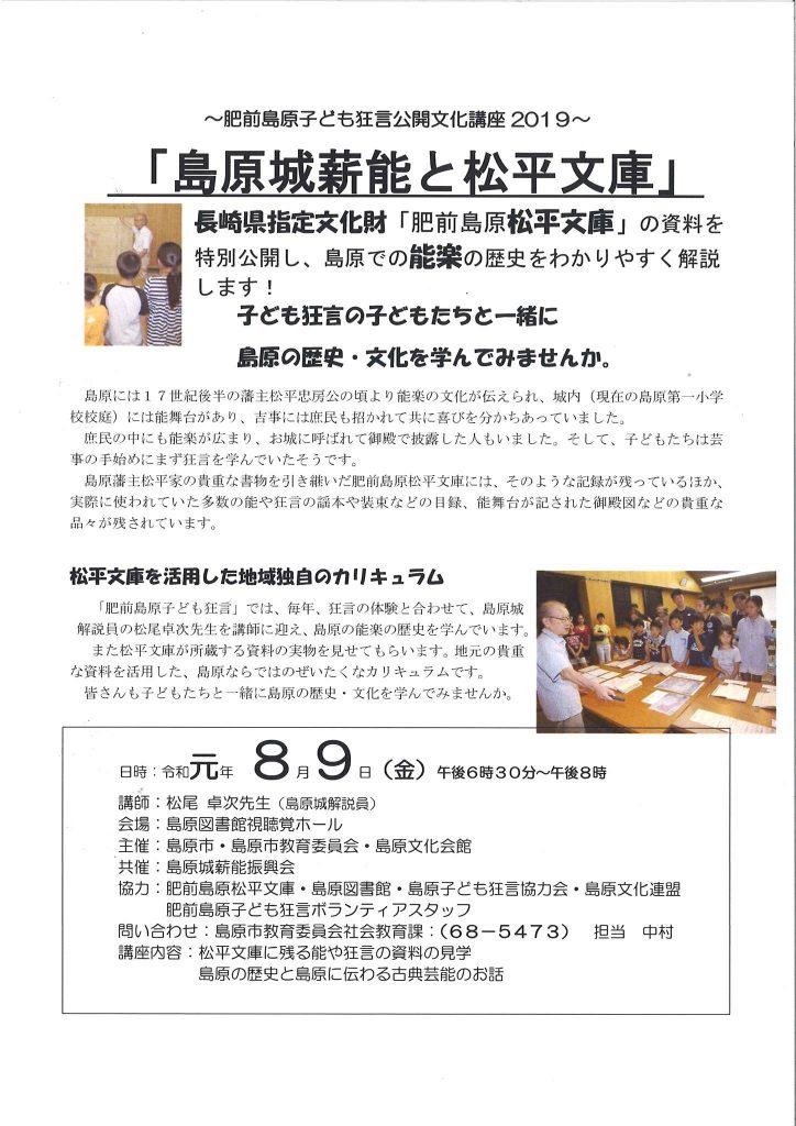 協力:肥前島原松平文庫・島原図書館・島原子ども狂言協力会・島原文化連盟・島原子ども狂言ボランティアスタッフ
