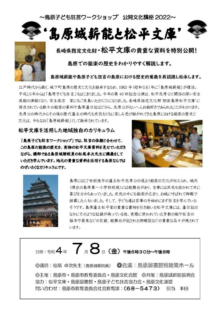 肥前島原子ども狂言公開文化講座2022「島原城薪能と松平文庫」