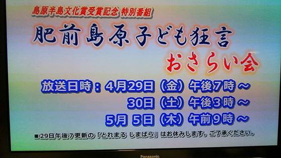島原地区にお住まいのみなさまへ特別番組放送のお知らせです! 先月3月23日(水)に島原文化会館で催された、島原半島文化賞受賞記念 特別番組...